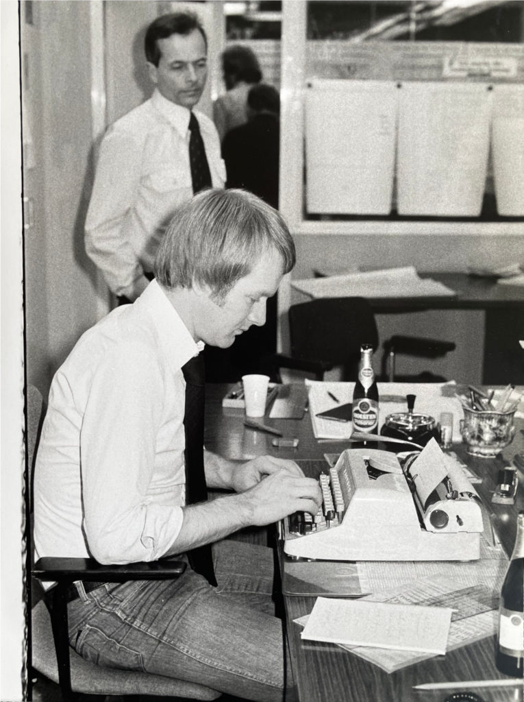 Bier, Zigarette und die Schreibmaschine, das ist alle was es 1980 in der Redaktion der Tageszeitung braucht, um in Stimmung zu kommen. Den Kollegen im Hintergrund interessiert nicht, was ich gerade zu Papier bringe. Er will nur reden, den richtigen Moment abpassen.